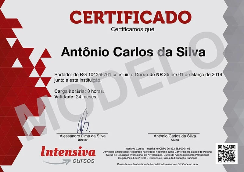 Este produto é um pacote com 2 cursos: o Curso de NR 10 e o Curso de NR 35. Cada curso acompanha um certificado individual, totalizando 2 certificados de conclusão.