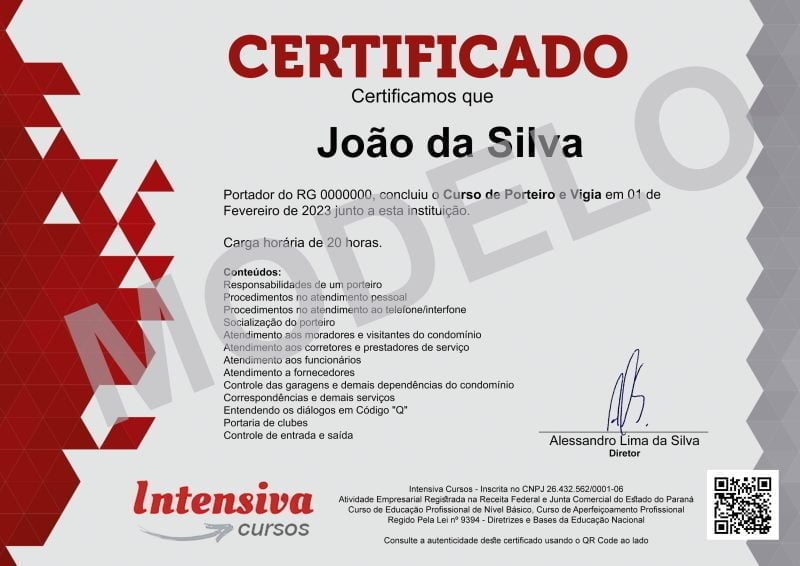 O curso de Porteiro e Vigia com Certificado é indicado para profissionais da portaria, foi desenvolvido para ensinar e orientar a tomar decisões diante de inúmeras situações, tornando-os pessoas responsáveis e bem preparadas.