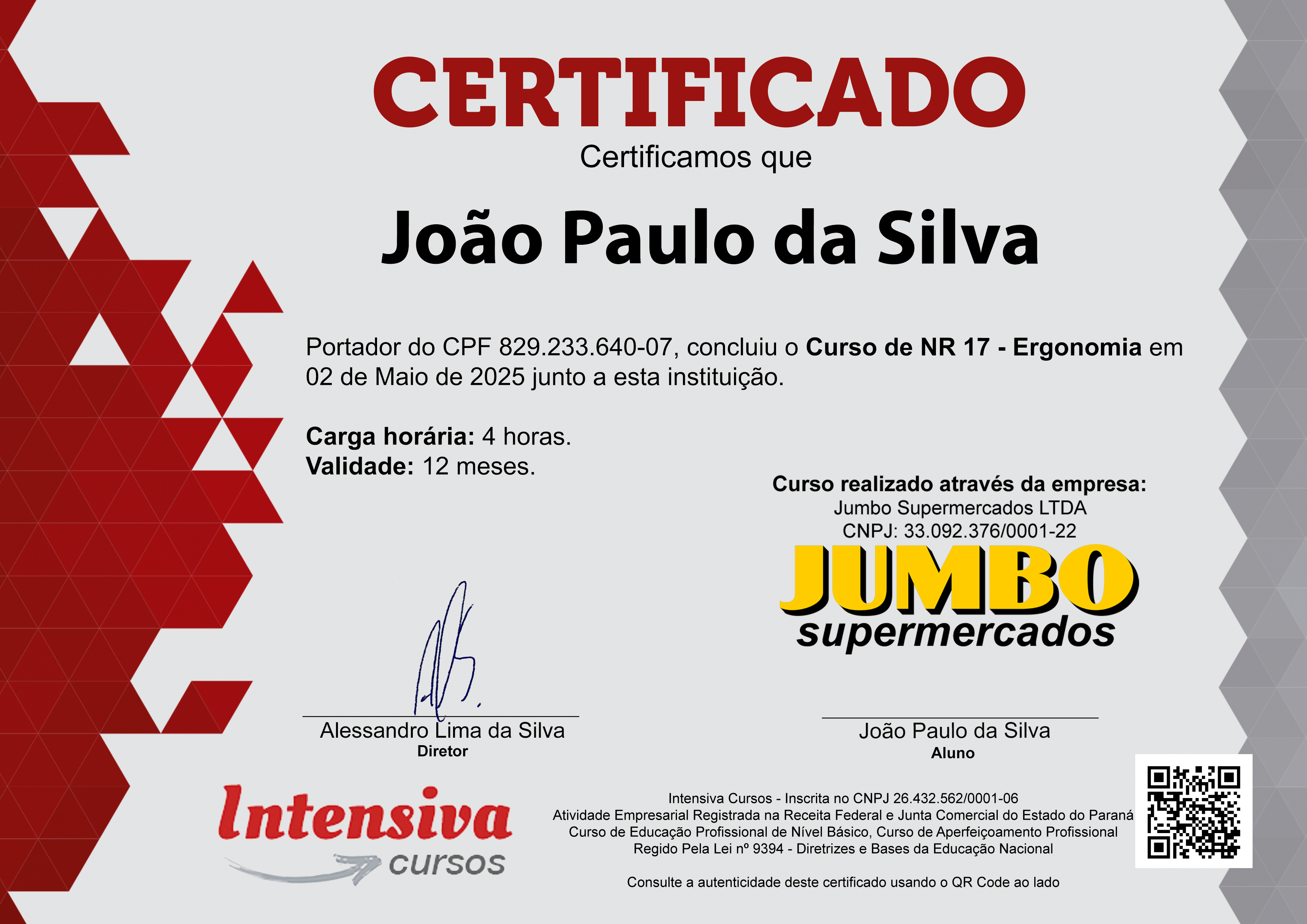 Ao adquirir este produto, todos os certificados referente aos cursos comprados com este mesmo e-mail terão o logotipo, CNPJ e o nome da empresa.